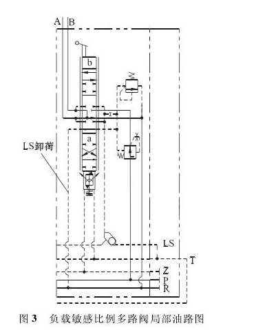圖中標出了中位Ls卸荷油路??梢?jiàn),在中位時(shí)LS卸荷,處于換向位置時(shí),此油路切斷。